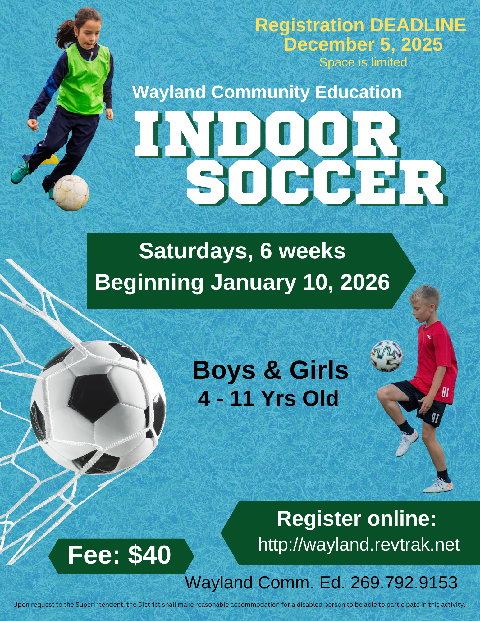 Wayland Community Education offers enrichment and recreational activities for youth, adults and senior citizens. For current class listings, please visit our WEBSTORE opens in new windowand click on "Community Education." We hope you try one of our classes and appreciate you choosing Wayland Community Education.