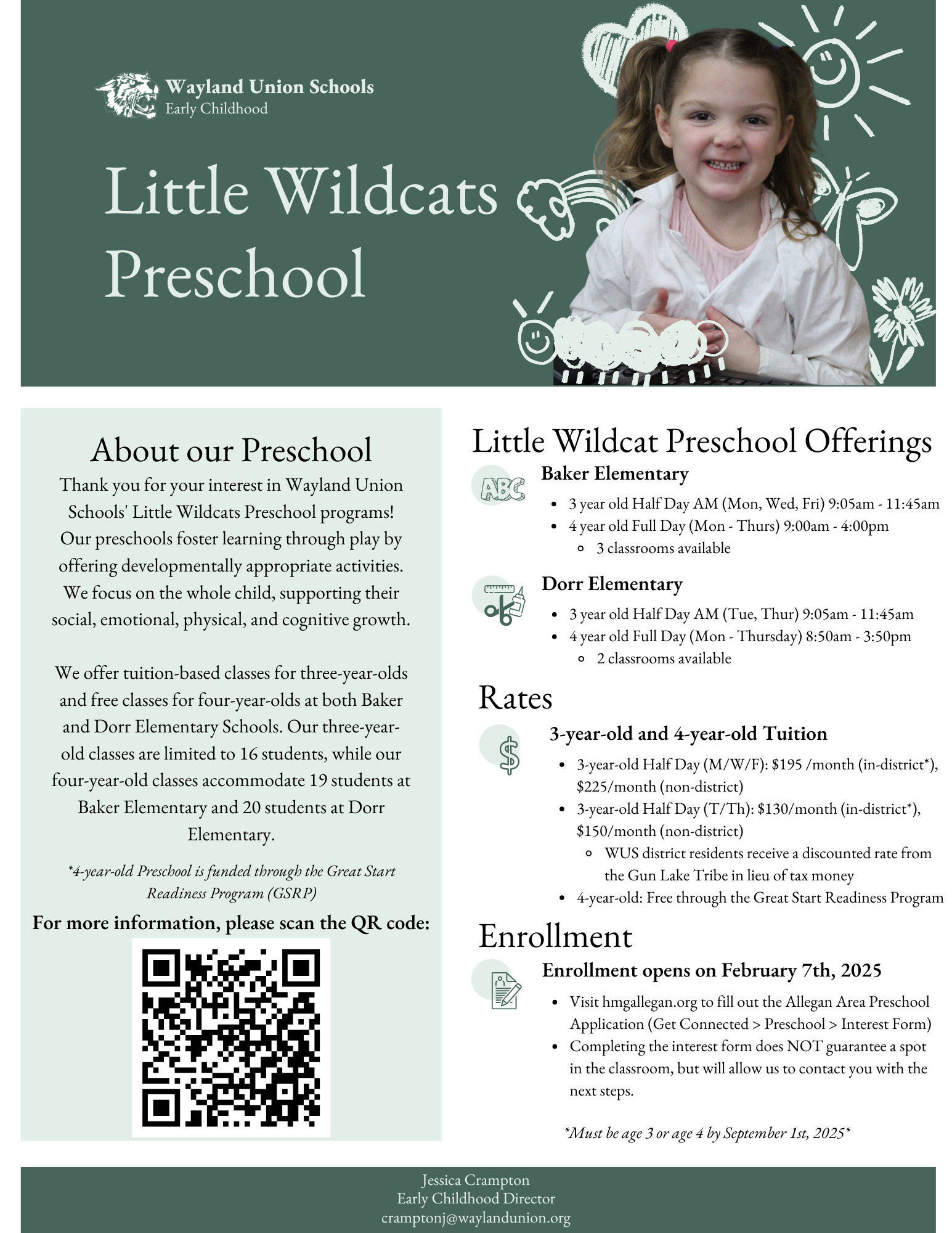 Looking to enroll in the 2025-2026 school year? Complete the 2025-2026 Allegan Area Preschool Application Link will open a new window.